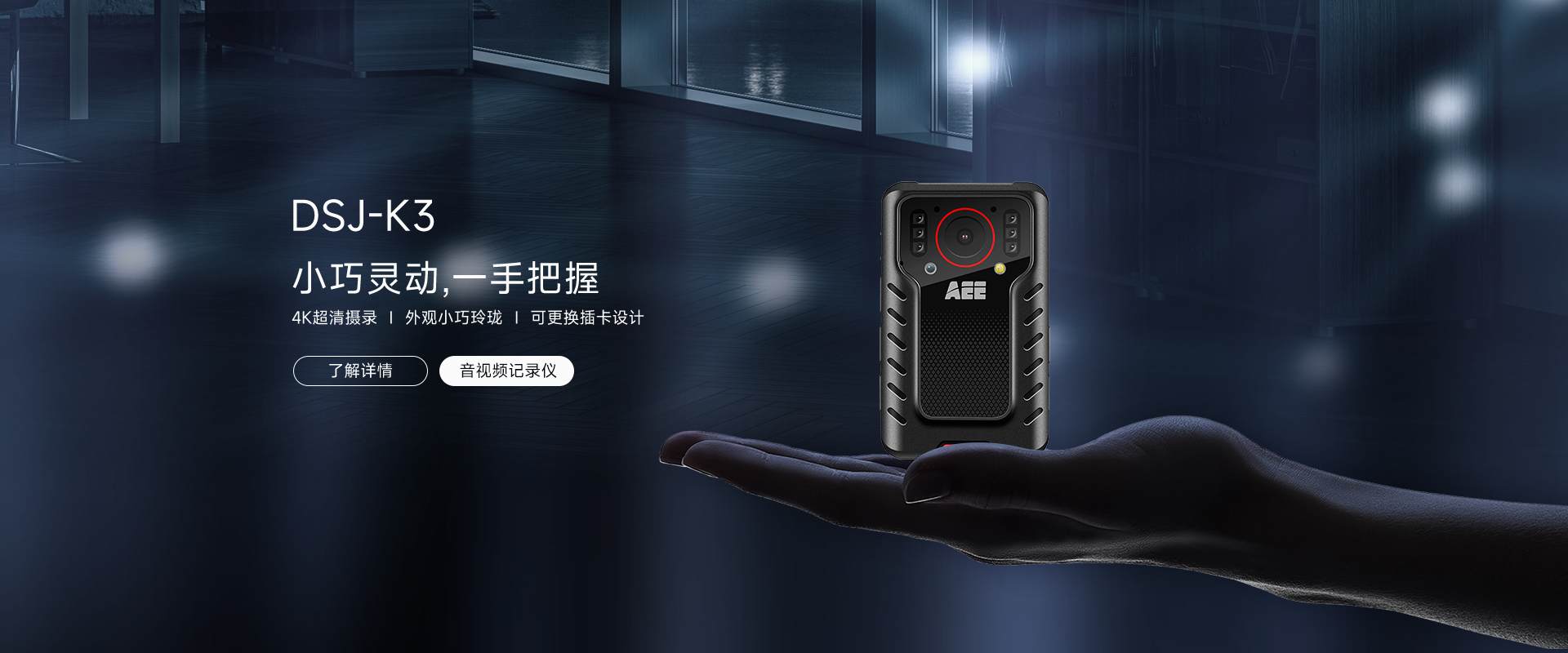 AEE DSJ-K5執法記錄儀采用新一代高性能主控芯片,最4k全高清視頻分辨率,擁有動態2160P/30幀攝像,拍照可達4800萬像素,支持紅外夜視功能;3000mAh內置鋰電池,拍攝時長可達12小時;IP68防護等級和6米防跌落設計,歷史軌跡查詢
